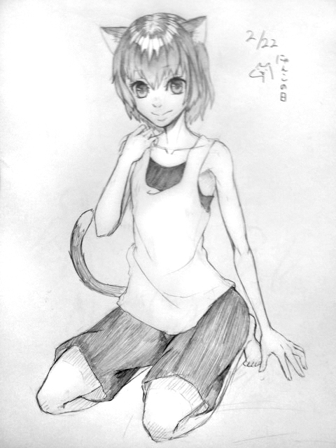 猫の日ということで、久々にユーキ描きました。どの程度久々なのかわかりませんが、ユーキのストレートヘアーが勝手にゆるふわガーリーパーマ風になる程度には久々です。